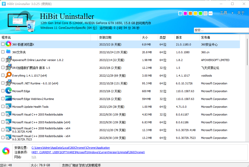 1、软件介绍HiBit Uninstaller 是一款可以完全卸载顽固软件、应用和浏览器扩展的工具。完全卸载程序,不留任何东西2、主要功能:软件卸载,Windows应用商店管理,程序组件管理Windows更新管理器,浏览器扩展管理器注册表清理,垃圾文件清理,空文件夹清理,快捷方式修复文件粉碎、进程管理,启动管理、服务管理,计划任务管理上下文菜单管理,系统还原管理,备份管理支持安装版、绿色便携版、免费3、下载地址下载地址1【官网】 最后修改:2023 年 03 月 08 日 © 允许规范转载 打赏 赞赏作者 支付宝微信 赞 如果觉得我的文章对你有用,请随意赞赏